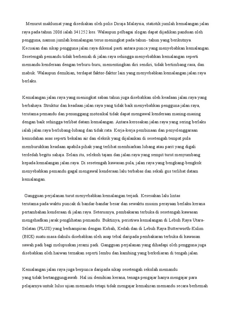 Contoh Karangan Kemalangan Jalan Raya Tahun 5 - Contoh Karangan Spm Punca Kemalangan Jalan Raya